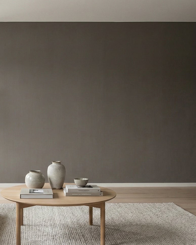 En djup gråbrun ton som skapar en lugn och ombonad atmosfär i rummet och ger väggarna en tydlig och självklar närvaro.