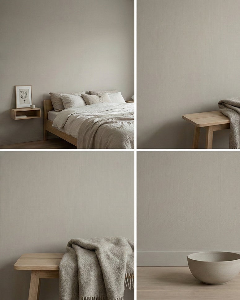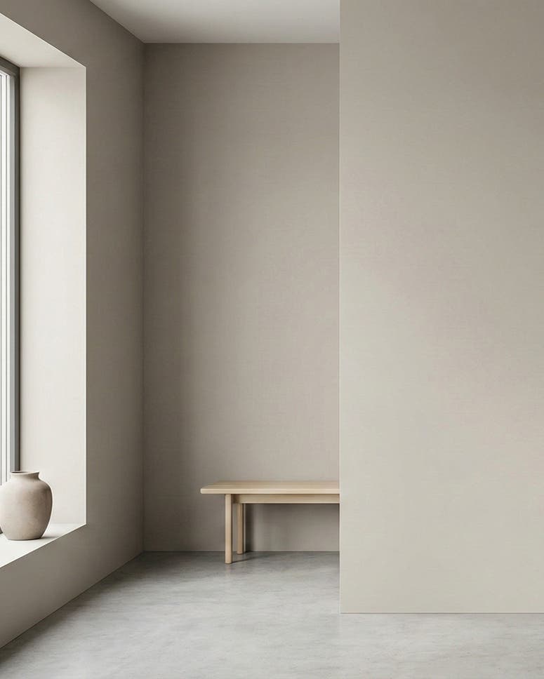 En ljus greige kulör som balanserar mellan varmt beige och mjukt grått. Linum skapar en lugn och harmonisk grund i rummet och passar särskilt fint tillsammans med ljusa träslag, textilier och andra naturmaterial.